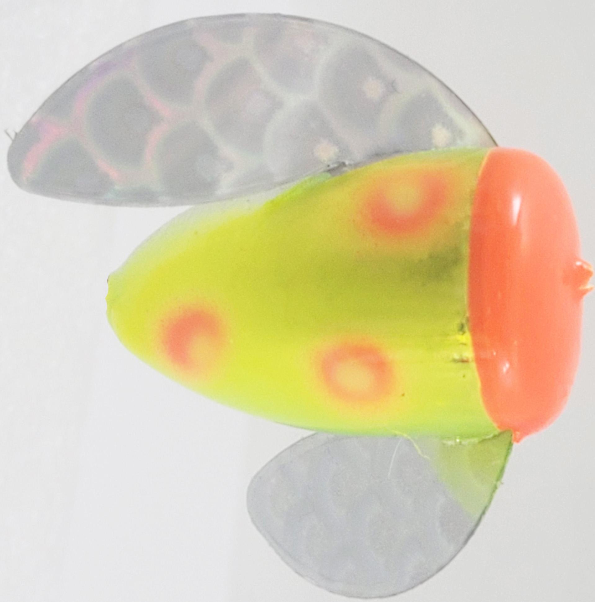 | Spin n Glo color | Creamsicle CS-MY, Glow w/ black dots LUBD-MY, Glow chartreuse green tiger LCGT-MY, Glow chartreuse orange tiger LCOT-MY, Glow chartreuse tiger/green head LCTG-MY, Glow w/ double dots LUDD-MY, Glow Pastel Wonder LPWB-MY, Glow Teal Scale LUTS-MY, Glow Yellowhead Wonder LUYW-MY, Nickel Plate w/ red dots NPRD-MY, Redhead wonder RHWB-MY, UV Frozen Tiger DTFT-MY, UV Glow Wonder DTLW-MY, UV Green w/ black dots DTGB-MY, UV Green Wonder DTGW-MY, Yellowhead wonder YHWB-MY |